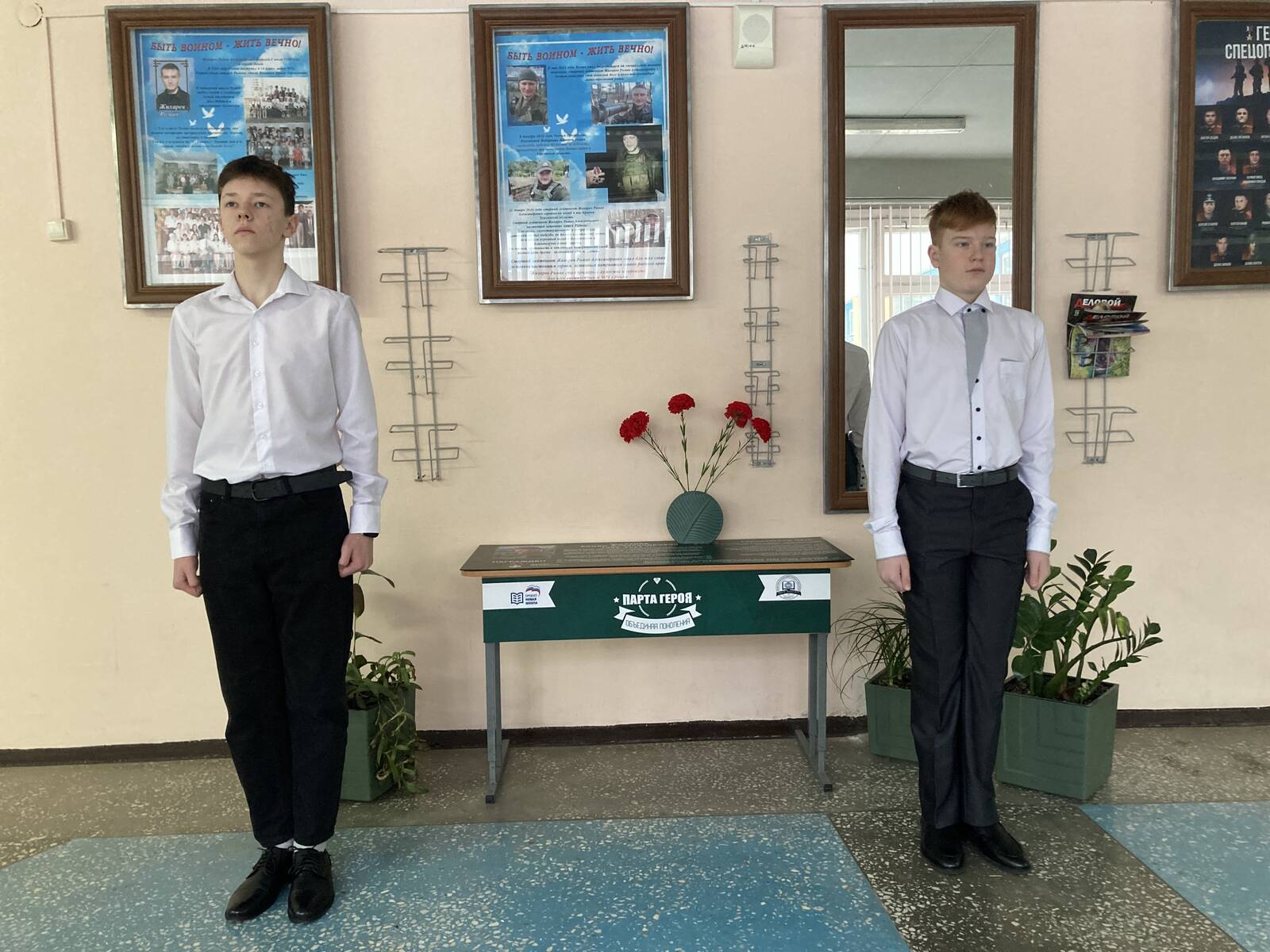 Памятный день начался с выставления почетного караула «Пост №1» у «Парты Героя» Жихареву Роману Александровичу – выпускнику лицея, героически погибшему в ходе специальной военной операции 21 января 2024 года в посёлке Крынки Херсонской области.