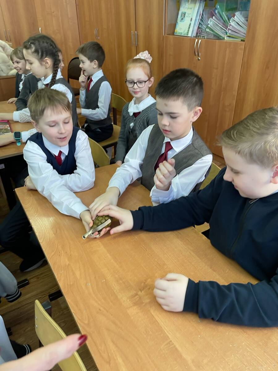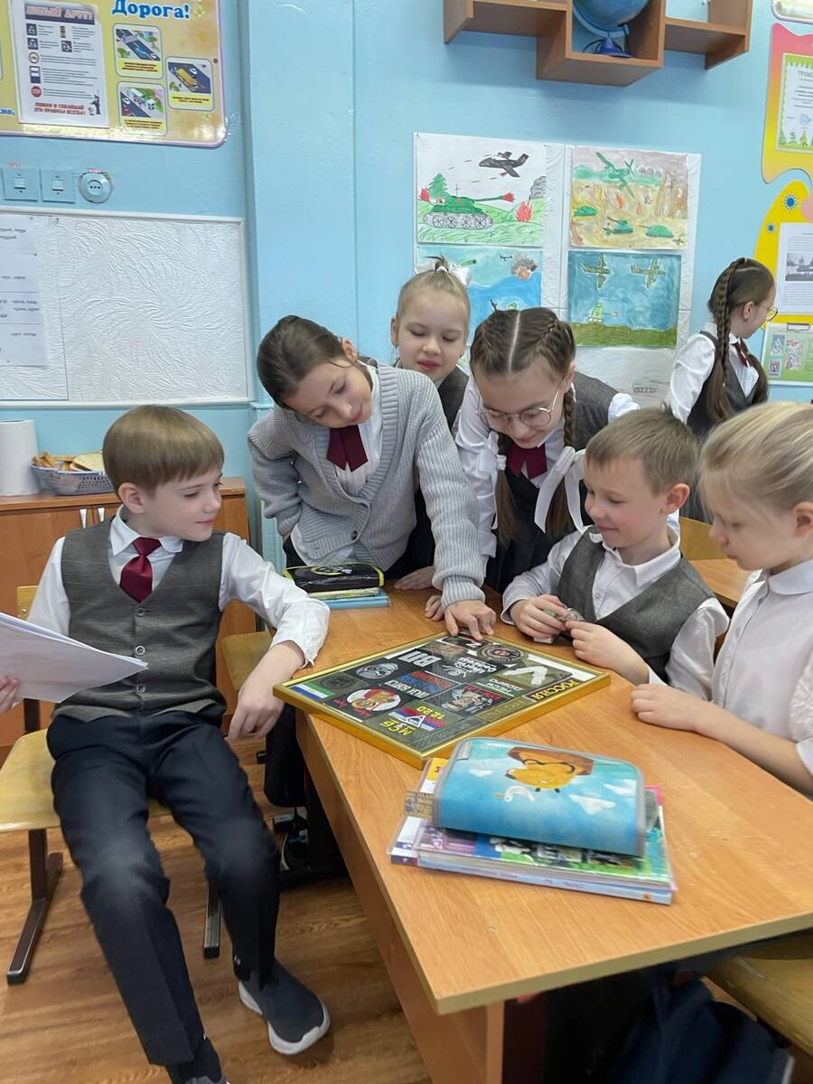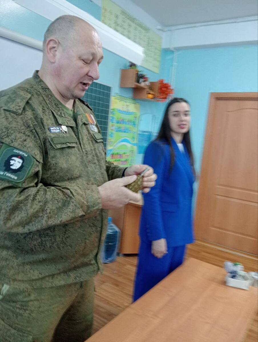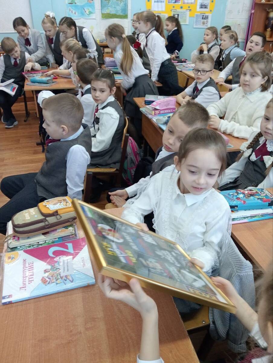 В канун Дня Защитника Отечества у учащихся вторых классов состоялась встреча с ветераном боевых действий и участником СВО Смоляковым Виктором Ивановичем. На которой он рассказал о быте и подвигах наших доблестных защитников. Показал детям шевроны и учебную гранату. Ученики передали рисунки и письма участникам СВО.