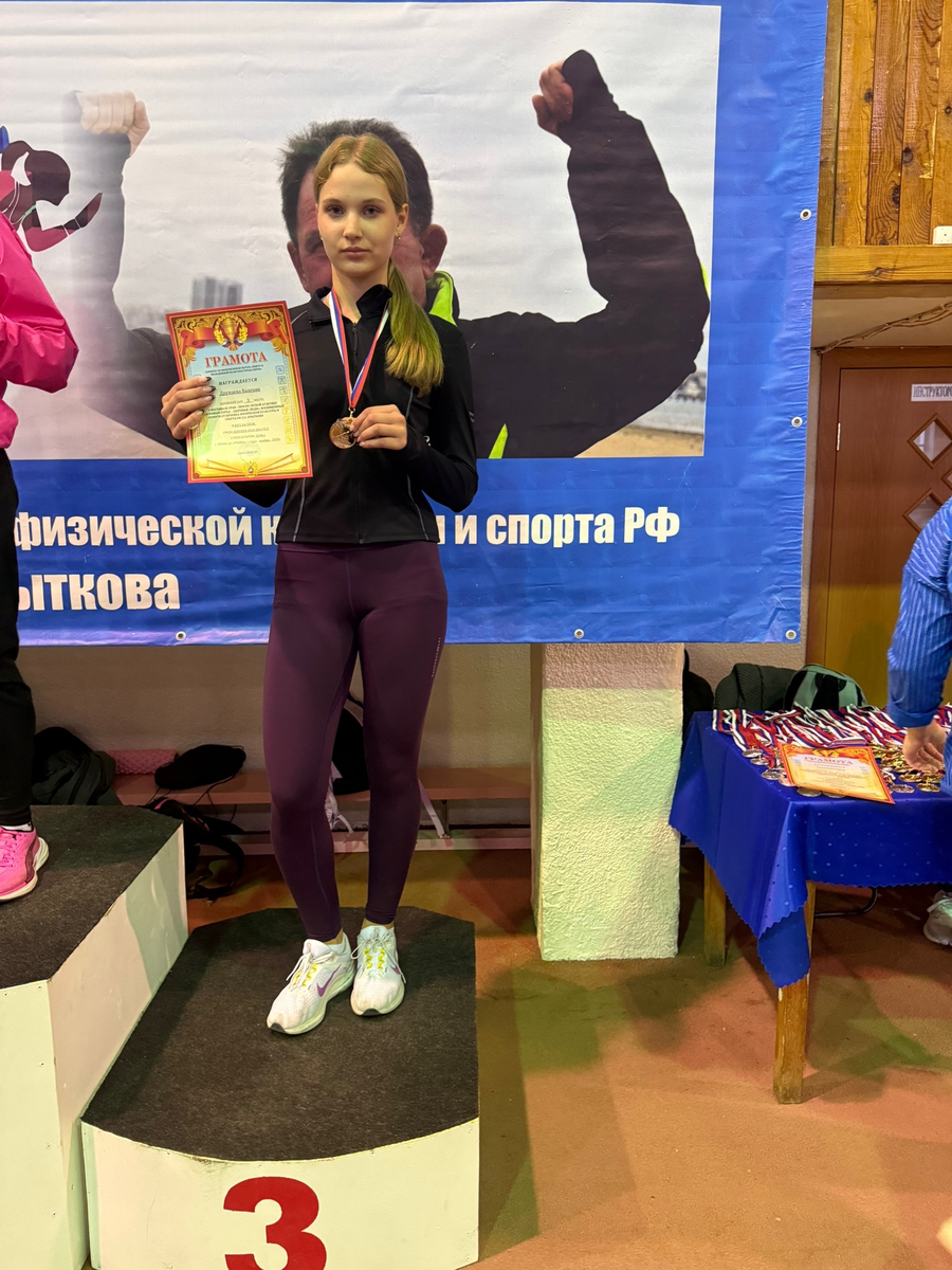 Дружаева Валерия,ученица 8Б класса, заняла 3 место в беге на 300 метров с результатом 45.06с.
