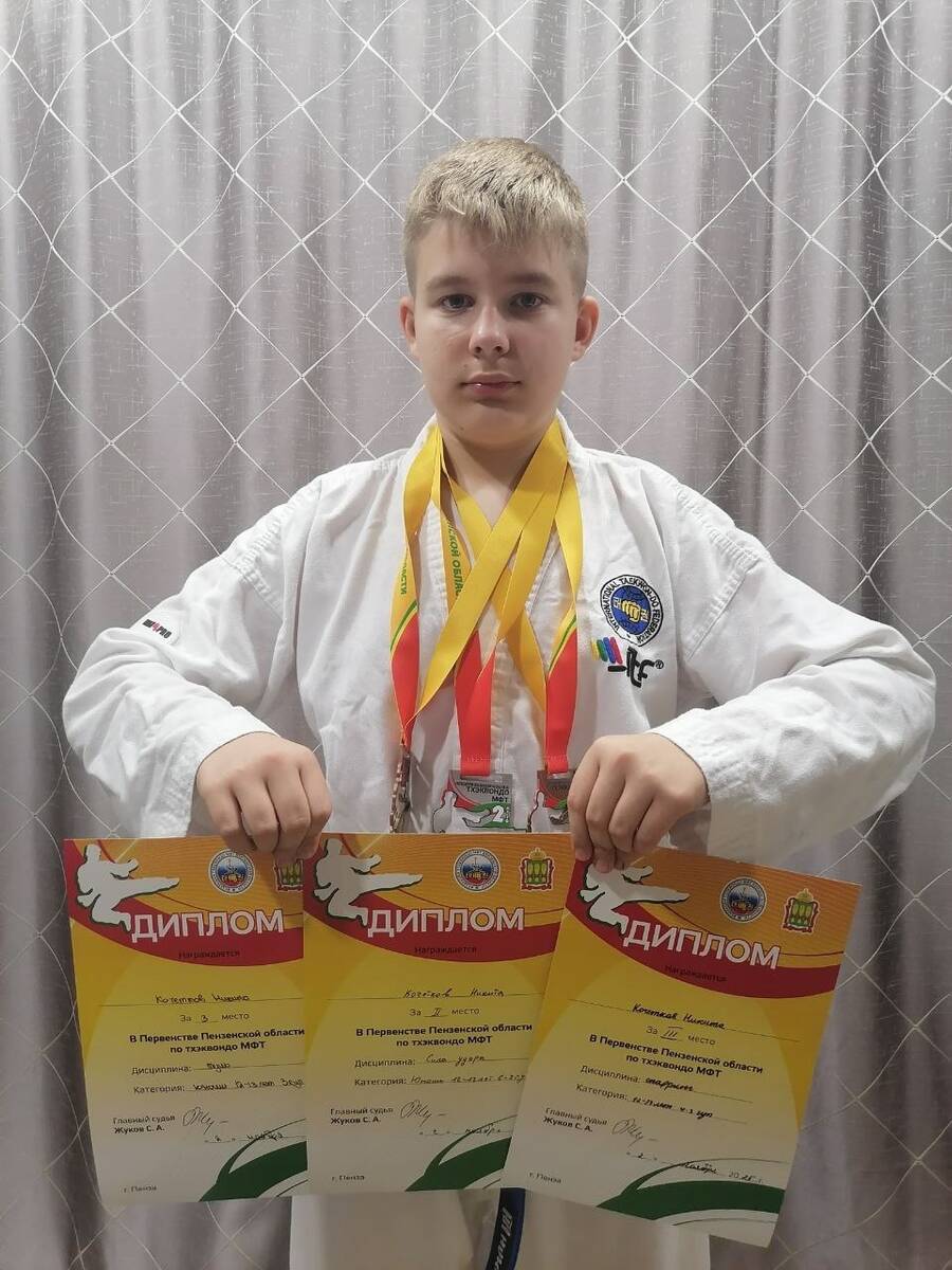 Кочетков Никита, ученик 7А класса,занял 2 место сила удара, 3 место туль, 3 место спарринг.