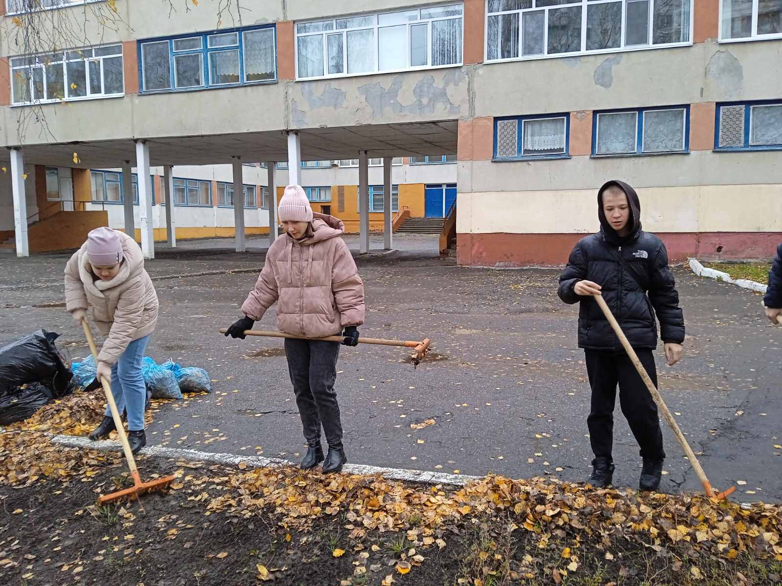В осенние каникулы на территории лицея проводится трудовой десант. Ученики совместно с учителями наводят порядок и чистоту, убирают листву, подготавливают территорию к наступлению зимы.