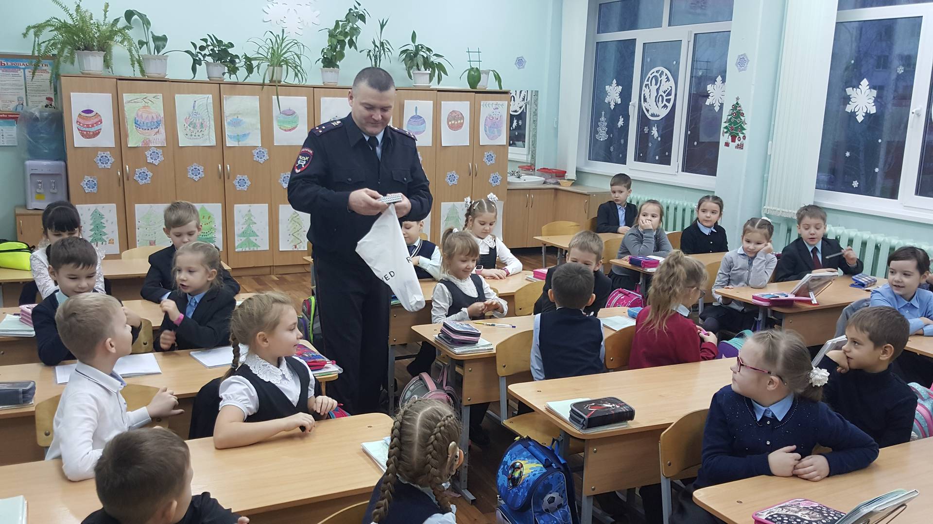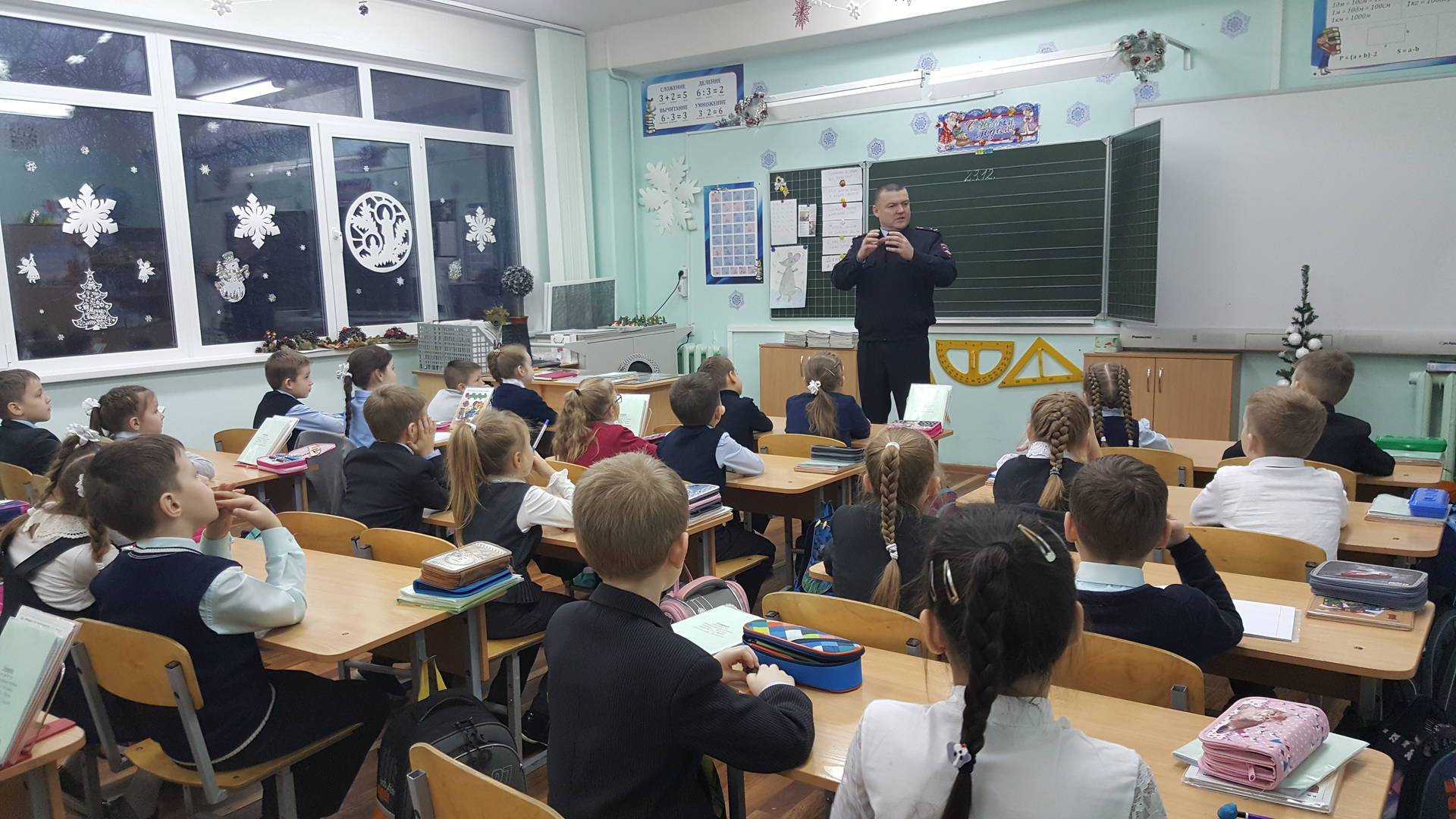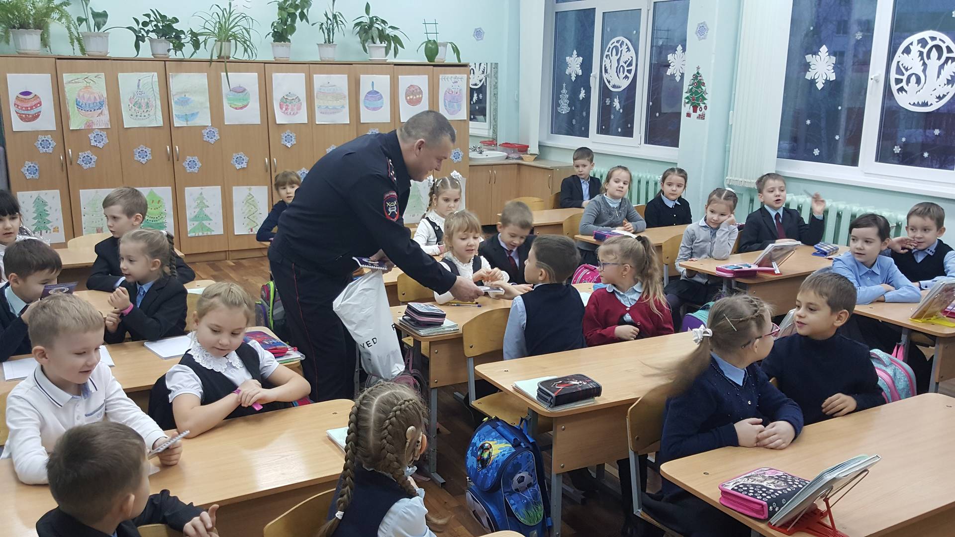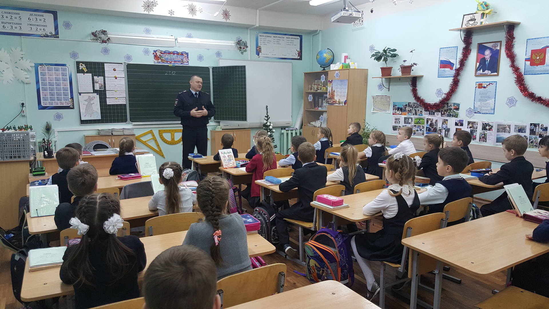 23 декабря обучающиеся 1 В класса встретились с сотрудником полиции - Юдановым Александром Александровичем. Старший лейтенант провел с детьми инструктаж по правилам дорожного движения, правилам безопасного поведения в период зимних каникул.